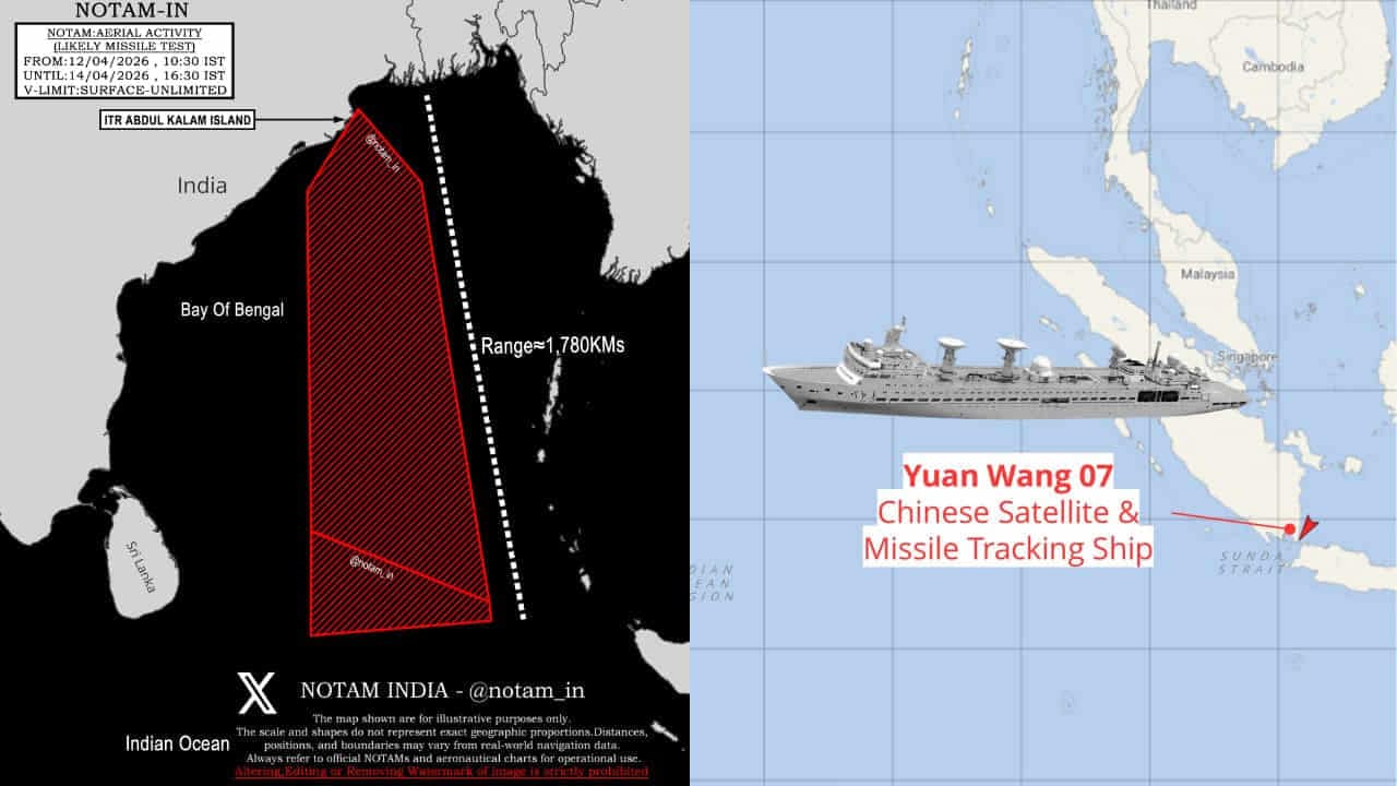सात अप्रैल को भी भारत ने 12 से 14 अप्रैल के लिए 1780 किमी की रेंज का NOTAM यानी “नोटिस टू एयरमेन” जारी किया था। मना जा रहा था कि यह कोई लंबी दूरी की मिसाइल का परीक्षण हो सकता है। इसी दौरान चीन का युआन वांग-07 जहाज सुंडा स्ट्रेट के रास्ते हिंद महासागर में दाखिल होने लगा।