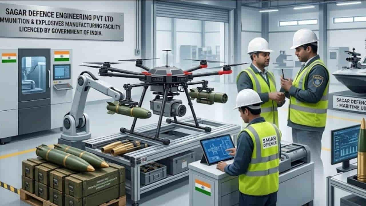 Sagar Defence ammunition licence: गोला-बारूद की विदेशों पर ने निर्भरता घटाने के लिए देश के डिफेंस सेक्टर ने बड़ा कदम उठाया है। अब तक ड्रोन और ऑटोमैटिक सिस्टम बनाने वाली प्राइवेट डिफेंस कंपनी सागर डिफेंस इंजीनियरिंग को अब देश में ही विस्फोटक और गोला-बारूद बनाने का लाइसेंस मिल गया है। यह लाइसेंस इंडस्ट्रीज (डेवलपमेंट एंड रेगुलेशन) एक्ट 1951 के तहत मिला है, जिसके बाद कंपनी अब अगले दो साल में बड़े स्तर पर विस्फोटक और एम्युनिशन बनाने की तैयारी कर रही है।