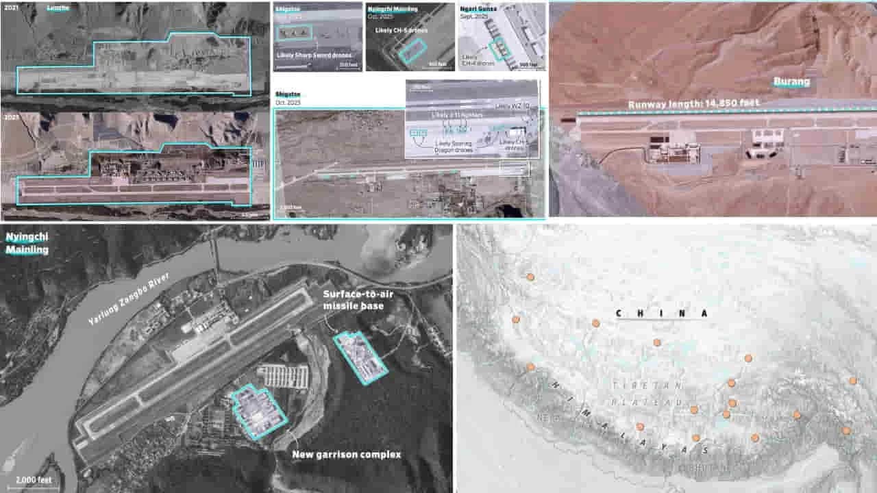 सैटेलाइट तस्वीरों के अनुसार, कम से कम आठ एयरबेस भारत की सीमा से कुछ ही दूरी पर मौजूद हैं। 2017 के डोकलाम विवाद और 2020 की गलवान झड़प के बाद से इस क्षेत्र में चीन ने मिलिटरी इंफ्रास्ट्रक्चर का निर्माण तेज किया है। ऊंचाई पर बने इन एयरबेस से चीन सैनिकों और हथियारों को तेजी से सीमा तक ले जा सकता है। (China Tibet airbases)