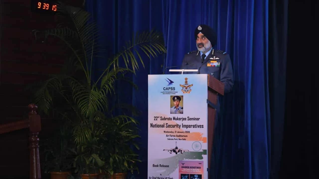 Subroto Mukerjee International Seminar 2026: भारतीय वायुसेना के चीफ ऑफ एयर स्टाफ एयर चीफ मार्शल एपी सिंह ने कहा कि किसी भी देश की राष्ट्रीय सुरक्षा की असली ताकत उसकी सैन्य क्षमता में होती है, और मौजूदा दौर में वायु शक्ति सबसे तेज और निर्णायक भूमिका निभाती है। बदलते वैश्विक हालात और बहु-आयामी खतरों के बीच भारत को अपनी सुरक्षा तैयारियों को भविष्य की जरूरतों के हिसाब से लगातार मजबूत करना होगा। उन्होंने यह बात 22वें सुब्रोतो मुखर्जी इंटरनेशनल सेमिनार के उद्घाटन अवसर पर कही, जहां राष्ट्रीय सुरक्षा से जुड़े अहम मुद्दों पर गहन मंथन किया गया।