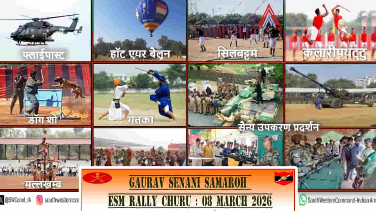 Gaurav Senani Samaroh: भारतीय सेना के सप्त शक्ति कमान के अंतर्गत रणबांकुरा डिवीजन 8 मार्च को राजस्थान के चूरू में “गौरव सेनानी समारोह” का आयोजन करने जा रही है। यह कार्यक्रम एसएआई स्पोर्ट्स स्टेडियम, चूरू में आयोजित होगा। इस समारोह का उद्देश्य जिले की सभी आठ तहसीलों के पूर्व सैनिकों, वीर नारियों और वीरांगनाओं को सम्मानित करना और उनसे सीधे संवाद स्थापित करना है।