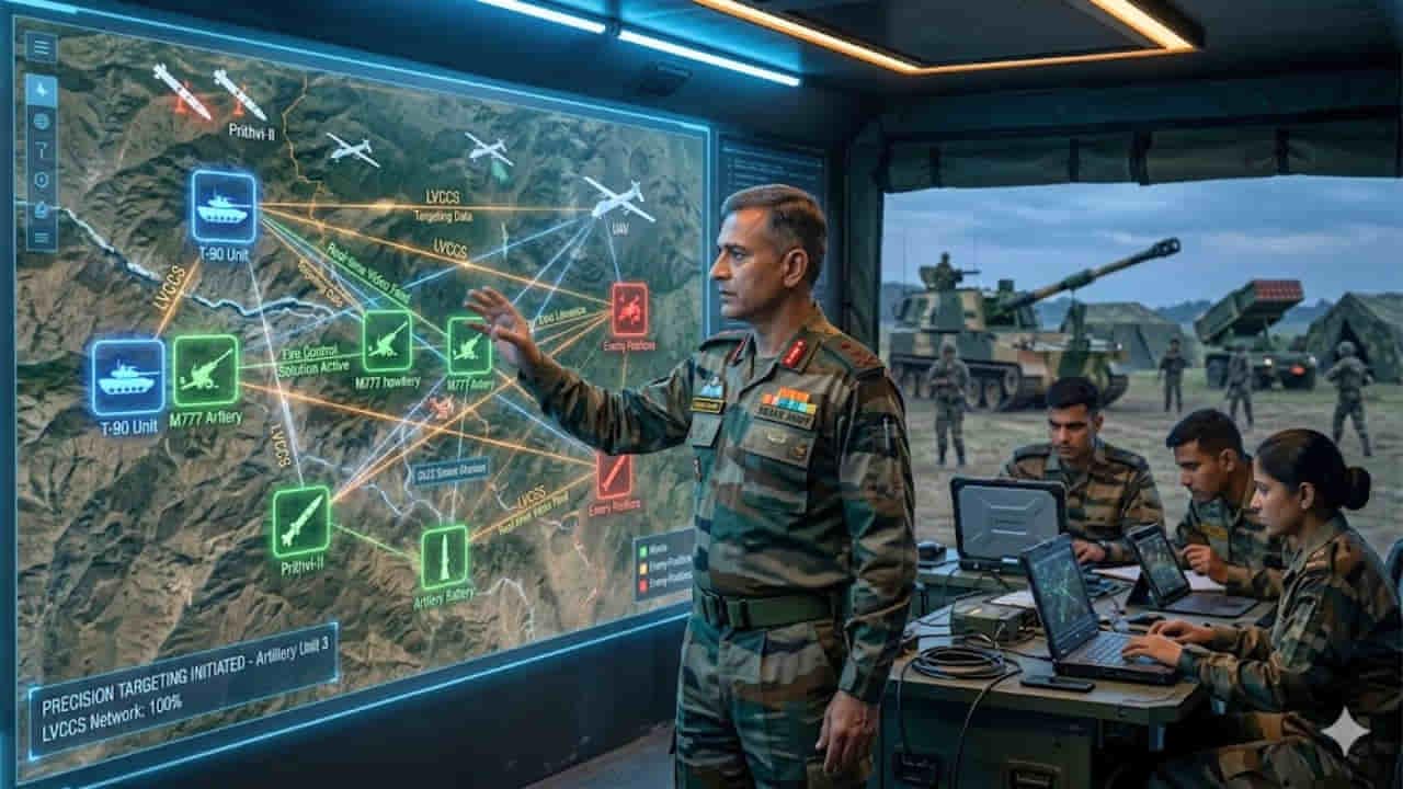 एलवीसीसीएस इस पूरी प्रक्रिया को एक साथ जोड़ देगा। यह ऑब्जर्वेशन से लेकर फायर डिलीवरी और डैमेज असेसमेंट तक सब कुछ ऑटोमेट करेगा। इसका मतलब है कि कमांडर को एक ही स्क्रीन पर पूरा बैटलफील्ड दिखेगा और वह तुरंत फैसला ले सकेगा। (LVCCS Indian Army)