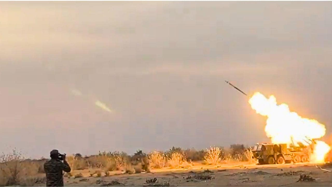 Pinaka Rocket Trials: नागपुर स्थित सोलर इंडस्ट्रीज ने राजस्थान के पोखरण फील्ड फायरिंग रेंज में पिनाका एक्सटेंडेड रेंज रॉकेट्स का सफल परीक्षण किया है। यह पहली बार है जब किसी प्राइवेट कंपनी ने प्रोडक्शन लेवल पर पिनाका रॉकेट्स का प्रूफ ट्रायल सफलतापूर्वक पूरा किया है।