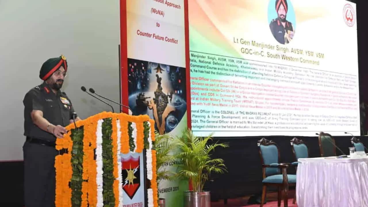 अपने उद्घाटन भाषण में आर्मी कमांडर ने कहा कि आज का वैश्विक माहौल अत्यधिक अस्थिर है, जहां अनिश्चितता और बदलते शक्ति संतुलन नई चुनौतियां पेश कर रहे हैं। उन्होंने रूस–यूक्रेन और इजराइल–हमास युद्धों का उदाहरण देते हुए बताया कि अब युद्ध केवल सैन्य मोर्चे तक सीमित नहीं हैं, बल्कि साइबर, सूचना, अर्थव्यवस्था और नागरिक संरचनाओं को भी निशाना बनाया जा रहा है।
